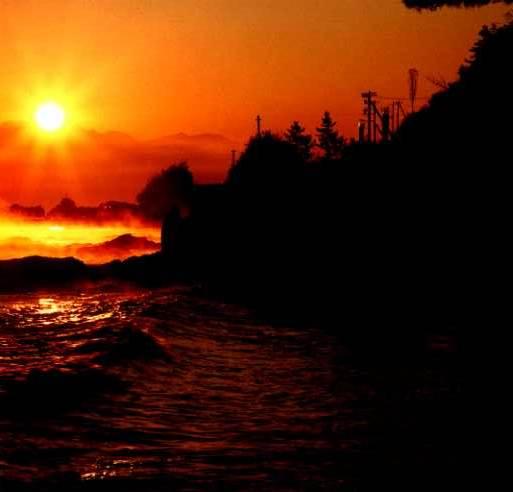 ![]() 「朝日と立山」雨晴海岸から |