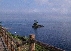 二上山の山裾にあり、国庁跡から1kmの所にある。日本海の荒波に洗わせて奇岩がそそり立つ。白い砂