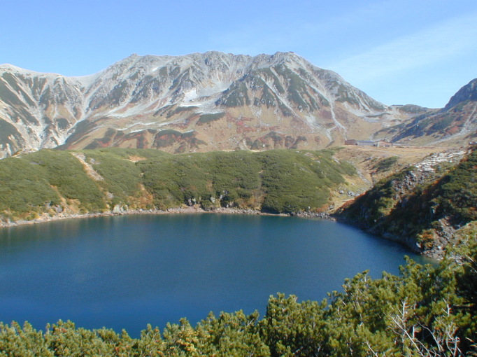 池の水面に鏡のようにうつる主峰立山。秋の心地よい風と日差しを浴びながら室堂平を散歩する。