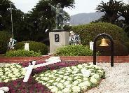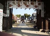 駅前通りと思っていた通りの名前が、いつのまにか「お城通り」になる。多分中央通りの交差点より城側道を言ったものであろう。お城通りの入り口に元禄時代村の看板があった。元禄時代の村というより町並みを観光用にレトロに作り直した所である。道の両脇に屋台やテント村が続き祭りの準備が進められている。掻き分けるようにして抜け、花岳寺に向かった。お城通りから西に向かって商店街を進み、突き当たった所にある。赤穂城主浅野家の菩提寺である。浅野内匠頭の墓の周りには四十七士の墓がコの字に守るように並んでいる。義士木像堂や宝物殿もある。大石邸から移植された忠義の桜もある。毎年12月14日の義士祭と2月4日の義士切腹の日、3月14日の浅野候命日に法要が執り行われる。12月14日にはお祭の義士に扮した人たちもお参りする。