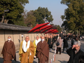 東寺「後七日御修法」行事の行列 東寺の金堂