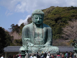 正式名高徳院という浄土宗の寺にある国宝の大仏は、阿弥陀如来坐像で民間に建立費用を募って造ったもの。最初は木造で台風で破壊された後、青銅の鋳造大仏に変わった。大仏殿の中に大仏が収納されていたが海に流されて、現在の露像になった。