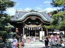 中世は大井荘と呼ばれ、東大寺領であったため、東大寺の鎮守を勧請して建てられた。今では大垣市の総鎮守で5月の大垣祭りには10両の山車が町を練り歩く。神社前の橋が八幡橋で、大垣祭ではメインになる橋である。赤い橋に擬宝珠は桜が満開の時に調和して美しい。