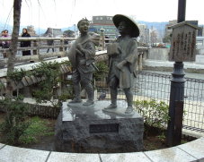 | 三条大橋側の弥次さん・喜多さん像 | 今の三条大橋 |