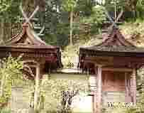 細い山道を奥に入り込んだ静寂な所にある。生い茂る杉の木の林の中に建っている。天照大神が天岩戸に隠れた時、手力男命が力いっぱい引いた戸が宙に舞い、ここに落下したとされる巨岩をご神体としてまつっている。すぐ近くにまっ二つに割れた巨岩がある。これは柳生石舟斎が天狗と戦った時、天狗だと思って切りつけた岩で、翌朝見るとまっ二つに割れたという伝説がある”一刀石”である。