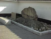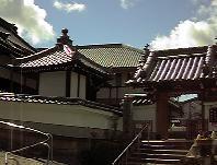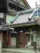 西端の入り口に当たるのがこの寺で外観は最近造られたもので新しい。中に入ると鬼瓦が、コンクリート塀に組み込まれている。この鬼瓦は旧本堂・入母屋造りの屋根瓦(宝暦9年1759)である。