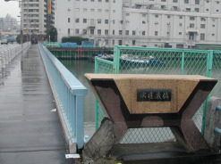 「雑魚場魚市場跡」近くにあり端建造橋