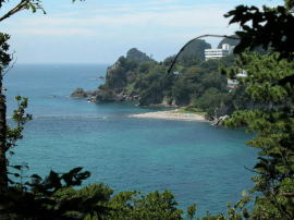 ・・・乗船場に近づくと、海ぎわにうずくまっている踊り子の姿が私の胸に飛び込んだ。そばに行くまで彼女はじっとしていた。はしけはひどく揺れた。踊り子は、やはり唇をきっと閉じたまま一方を見つめていた。ずっと遠ざかってから踊り子は白いものを振り始めた。汽船が下田の町を出て伊豆半島の南端が後ろに消えていくまで、私は欄干にもたれて沖の大島を一心にながめていた。